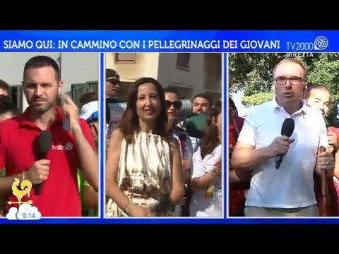 Siamo qui: in cammino con i pellegrinaggi dei giovani Collegamenti con Enrico Selleri da Sant’Antonino di Susa (Torino) a Sant’Ambrogio di Torino, Francesca Cugliandro da Lecce a Copertino, e con Daniele Morini da Orte a Gallese (Viterbo).