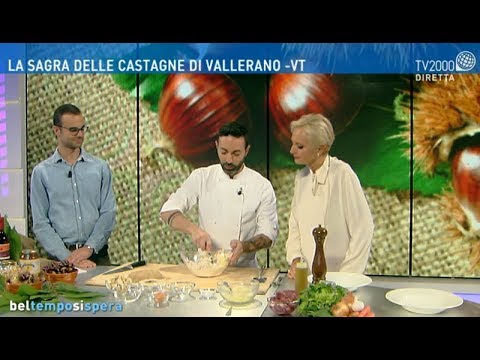 Tiziano Valerio Severini, pres. Pro loco di Vallerano e lo chef Daniele Ferrari parlano della sagra delle castagne di Vallerano e mostrano come preparare gli gnocchi di castagne