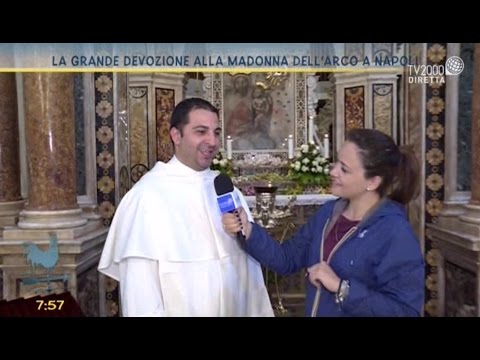 Antonella Ventre è in compagnia di padre Alessio Romano, priore della Basilica della Madonna dell’Arco a Napoli. Bel tempo si spera del 13 maggio 2016.