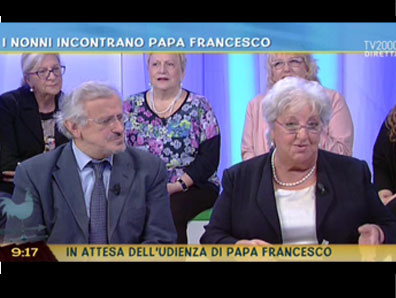 I nonni incontrano Papa Francesco: ospiti a Bel tempo si spera Elio D’Orazio, Vilma Vaccari, pres. centro anziani Colle Aniene Roma, e 3 nonne attrici