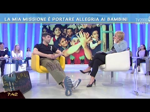Marco Rodari, Clown Pimpa, racconta la sua missione, di portare allegria ai bambini degli ospedali e delle zone di guerra.