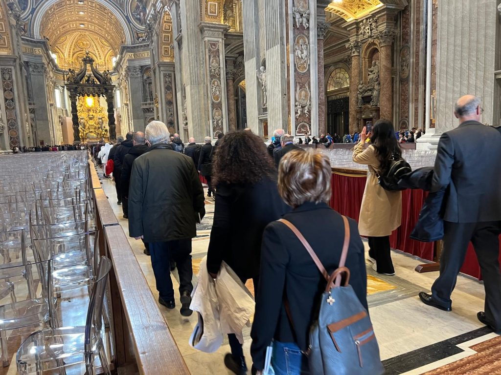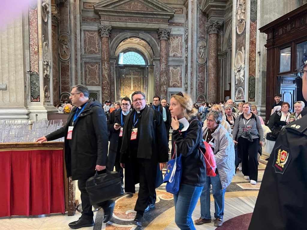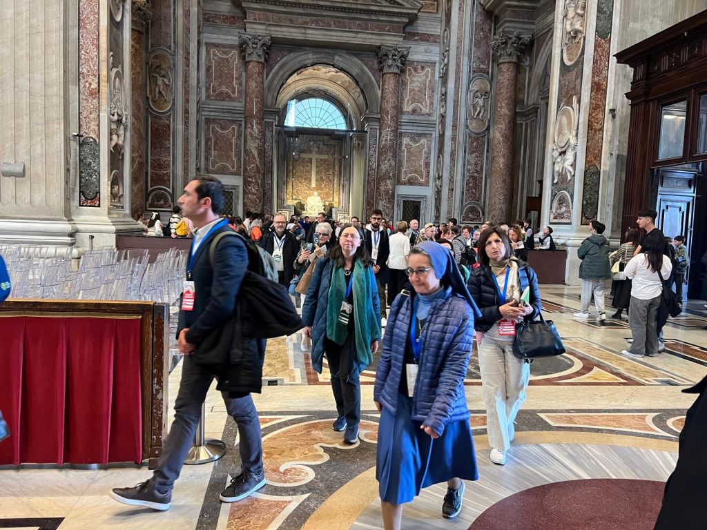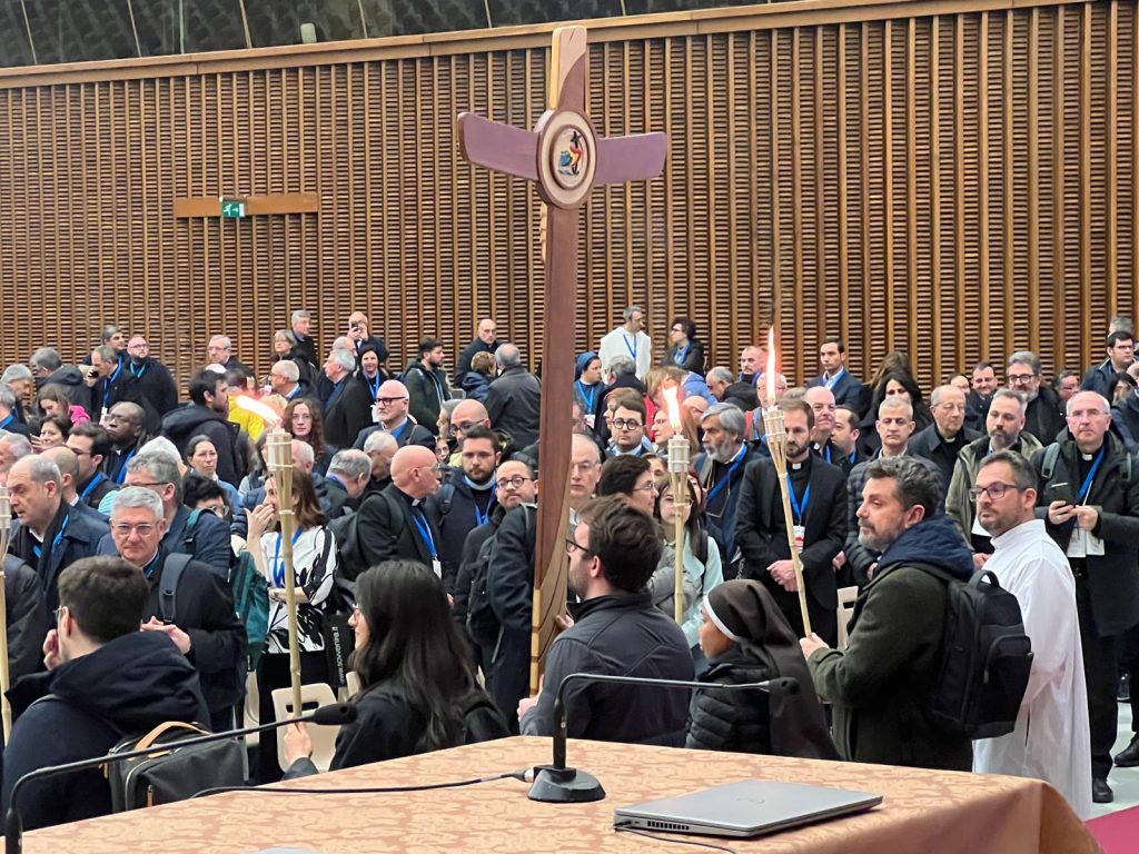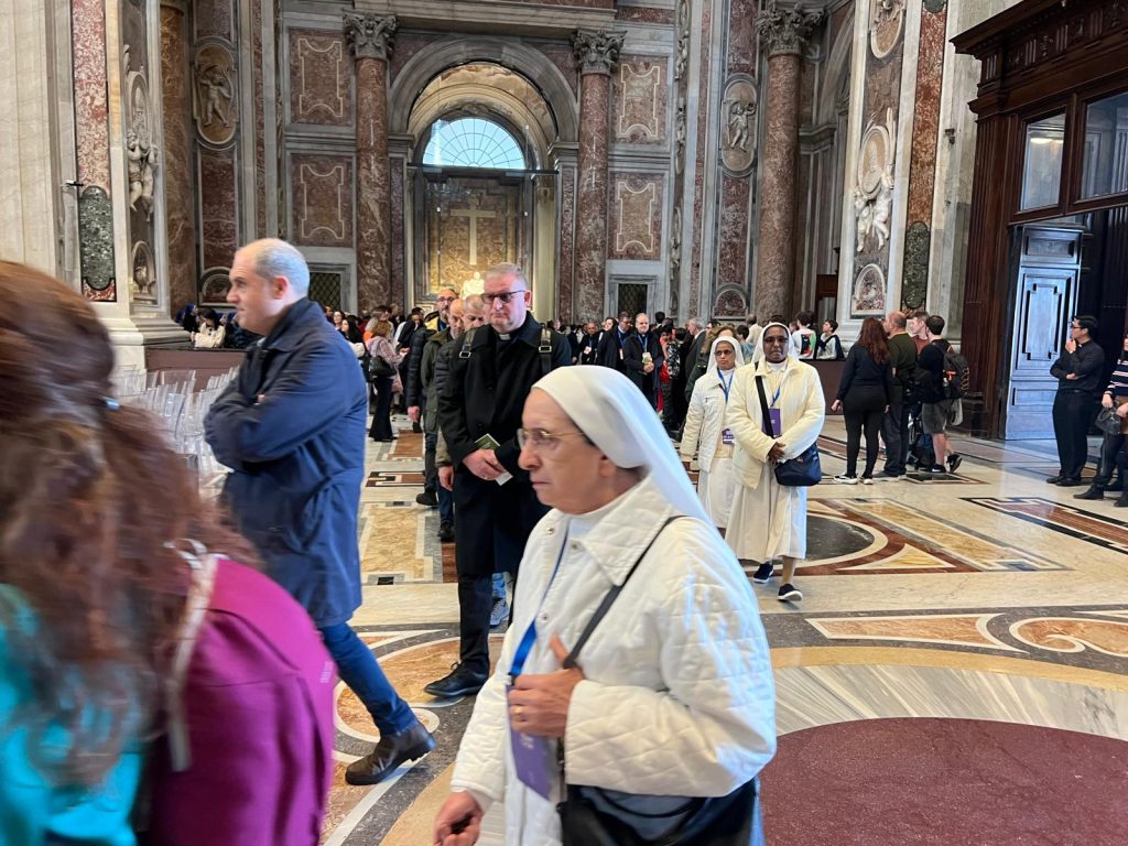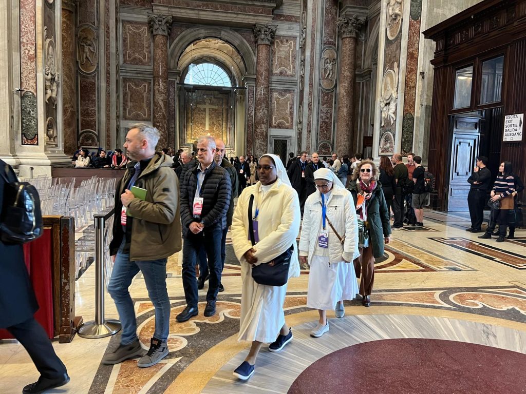 Terzo giorno di lavori della Seconda Assemblea sinodale delle Chiese in Italia nell’Aula Paolo VI in Vaticano. Sono 1008 partecipanti, di cui: 168 Vescovi, 7 Cardinali, 252 sacerdoti, 34 religiosi, 17 diaconi, 530 laici (di cui 253 uomini e 277 donne). Nella mattinata i partecipanti hanno proseguito il confronto nei gruppi di lavoro e nel pomeriggio si sono ritrovati nell’ Aula Paolo VI per un momento di riflessione con le testimonianze di don Claudio Burgio, cappellano dell’Istituto penale minorile Beccaria di Milano, Laura Lucchin, la mamma di Sammy Basso, e Giorgio e Marta Scarpioni, una famiglia che ha vissuto un’esperienza missionaria. E a seguire il Pellegrinaggio Giubilare verso la Basilica di San Pietro e il passaggio della Porta Santa.