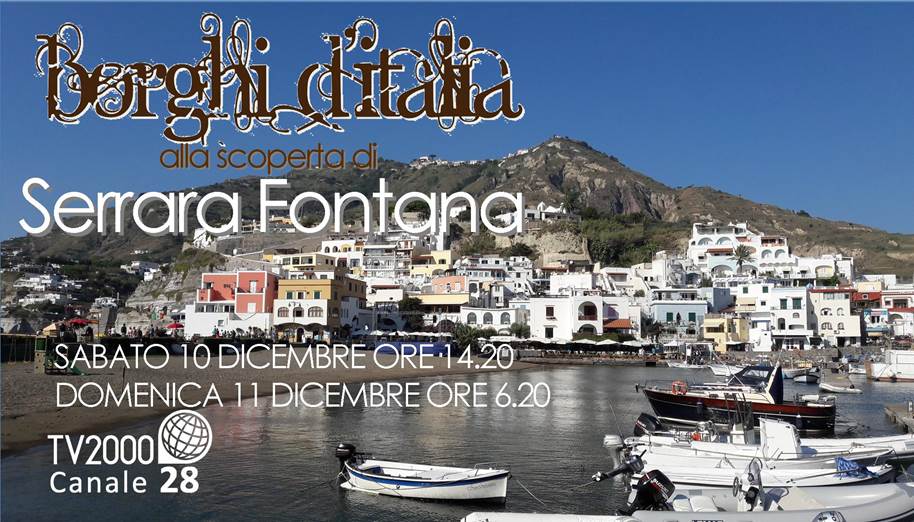 Il sesto appuntamento stagionale di Borghi d’Italia ci porterà a Serrara Fontana nella splendida Isola di Ischia. Il Comune adagiato sotto il Monte Epomeo si estende fino al meraviglioso borgo marinaro di Sant’Angelo. Nel corso del programma incontreremo i protagonisti della vita cittadina e rivivremo le fasi salienti della festa più importante dell’anno dedicata a San Michele Arcangelo. visiteremo i borghi del luogo, le chiese, le case di pietra e le antiche Terme di Cavascura. Inoltre conosceremo l’artigianato, i piatti tipici e il dialetto del luogo. Le bellezze dell’isola “verde” e del suo mare saranno la cornice ideale per una puntata da seguire, con calma, dall’inizio alla fine.
