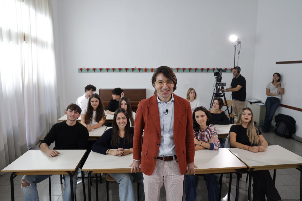 È una scuola paritaria di fama, un istituto pontificio, laboratorio di scienza e conoscenza, di crescita umana e spirituale. Mezz’ora per un incontro con il pensiero, e per sentire le ragioni e le inquietudini, la passione dei liceali, in un progetto di alternanza scuola-lavoro che li avvicina alle telecamere e alla costruzione di un programma televisivo.