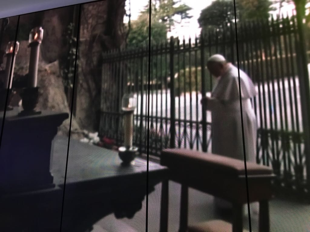 Papa: La preghiera del Rosario non ci allontana dalle preoccupazioni della vita; al contrario, ci chiede di incarnarci nella storia di tutti i giorni per saper cogliere i segni della presenza di Cristo in mezzo a noi. Ogni volta che contempliamo un momento, un mistero della vita di Cristo, siamo invitati a riconoscere in quale modo Dio entra nella nostra vita, per poi accoglierlo e seguirlo. Scopriamo così la via che ci porta a seguire Cristo nel servizio ai fratelli. Accogliendo e assimilando dentro di noi alcuni avvenimenti salienti della vita di Gesù, noi partecipiamo alla sua opera di evangelizzazione perché il Regno di Dio cresca e si diffonda nel mondo.
