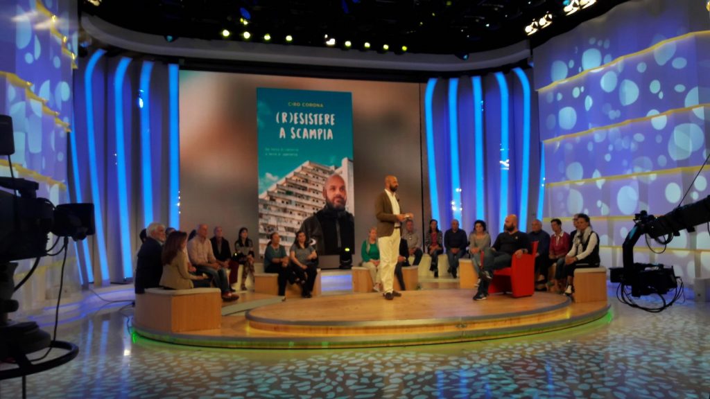 Ciro Corona, presidente e fondatore dell’Associazione (R)esistenza, offre un punto di vista alternativo, la prospettiva di una Scampia meno nota, ma allo stesso tempo presente, che fa resistenza da trent’anni alla camorra, che si muove attraverso cose concrete come l’attivismo e la solidarietà, e che si contrappone all’altro “sistema” come fossero due scuole di pensiero diverse. L’idea di resistenza di Ciro Corona dimostra già i frutti del cambiamento e per il suo impegno a favore del riscatto della periferia napoletana, nel 2013, è stato insignito del Premio Borsellino per la legalità e nel 2017 del Premio Società Civile e Cultura per la legalità.