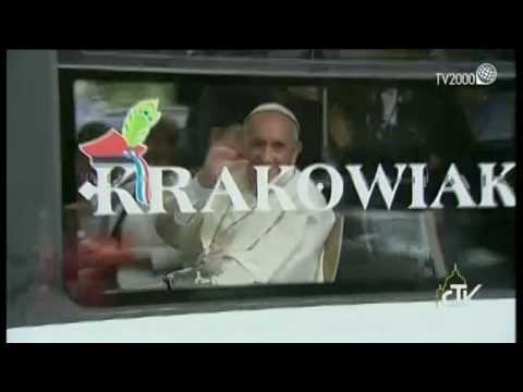 Papa Francesco raggiunge con il tram i giovani della GMG di Cracovia