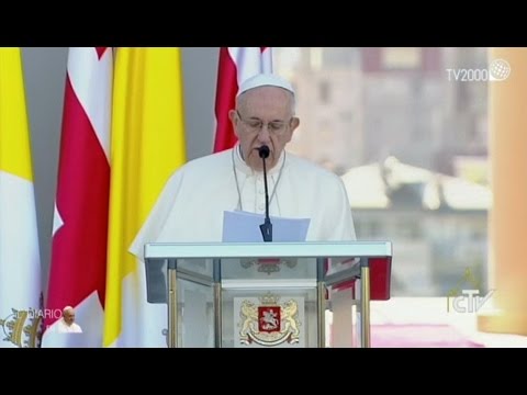 Il discorso di Papa Francesco alle Autorità, Società Civile e il Corpo Diplomatico nel Cortile del Palazzo Presidenziale di Tblisi, 30 settembre 2016 Qui il testo: http://w2.vatican.va/content/francesco/it/speeches/2016/september/documents/papa-francesco_20160930_georgia-autorita-tbilisi.html