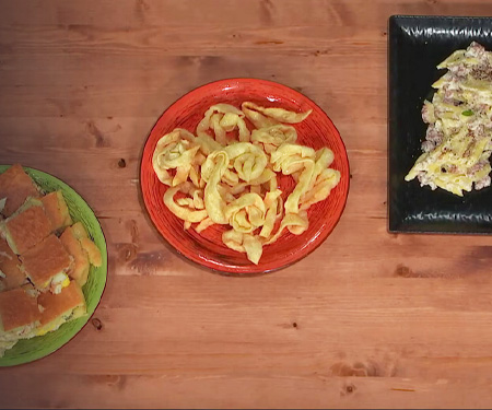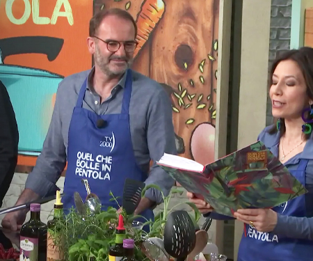 Riapre la cucina di Quel che bolle in pentola: oggi il nostro chef Fabio Cinelli, ha preparato una mattonella di carote con crema di caprino. La signora Mirella, invece, ospite di questa puntata, ha cucinato un ottimo riso con spezzatino al curry, mentre il maestro pizzaiolo Roberta Esposito ha impastato una delizia al formaggio