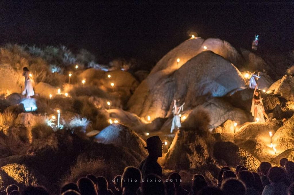 Retroscena va fuori dal mondo per scovare il Teatro! Nell’ottavo appuntamento stagionale del programma Michele Sciancalepore va alla scoperta di un luogo desolato e isolato, brullo e ispido ma ricco e reso fertile dall’arte teatrale: “I Calanchi Lucani”. Sembra di stare nell’arida Arizona, invece siamo nell’entroterra della Basilicata, a sette chilometri dalla “città bianca”, Pisticci, in un posto che crea stupefazione, da salvaguardare e rispettare perché è il risultato morfologico di milioni di anni di paziente lavorio di erosione degli agenti atmosferici che lo ha reso così unico, intimo, lunare, vuoto e quindi pieno di suggestione. E qui si fa teatro, “Il Teatro dei Calanchi”, un evento a impatto zero, senza tecnologia, senza elettricità né amplificazione, senza inquinamento luminoso né acustico. Con cosa allora? «Con la creatività, un dono che va scartato e messo al servizio della comunità», non ha dubbi Daniele Onorati, migrante di ritorno, ideatore e direttore artistico del progetto.