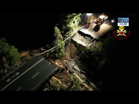 Crolla un tratto di viadotto lungo la Torino-Savona. Il cedimento è avvenuto sulla autostrada A6. Le immagini del disastro che, per fortuna, non ha provocato ne morti ne feriti. Il servizio di Massimiliano Cochi.