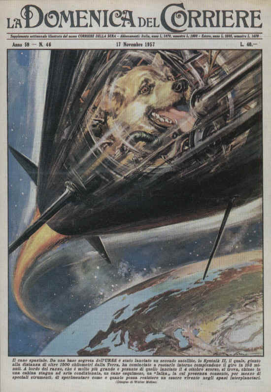 I giornali occidentali ne parlarono ampiamente. La Domenica del Corriere dedicò la copertina a Laika. Morì dopo 7 ore di sbalzi di temperatura dovuti a un guasto al sistema di refrigeramento all’interno della capsula.