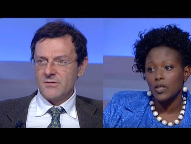 Leonardo Becchetti, economista e Marie Claire Safari, presidente della comunità rwandese in Italia ospiti a TGtg – Telegiornali a confronto del 6 aprile 2016.