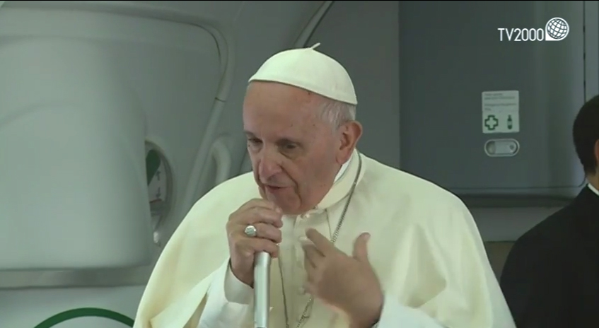 Roma, 11 settembre 2017. Tv2000 trasmette oggi, alle ore 16.30, la conferenza stampa di Papa Francesco a bordo dell’aereo che lo ha riportato in Italia al termine del viaggio in Colombia. La conferenza sarà trasmessa integralmente all’interno dello speciale del ‘Diario di Papa Francesco’ con l’inviata, Cristiana Caricato, e potrà essere seguita sul canale 28 del digitale terrestre, 18 di TvSat, 140 di Sky e in streaming su www.tv2000.it.