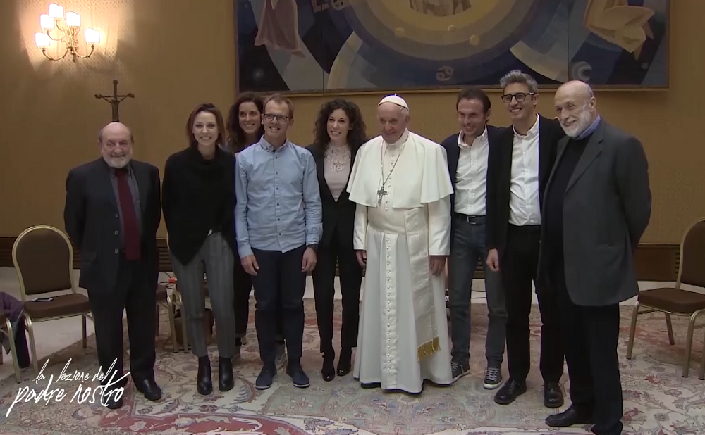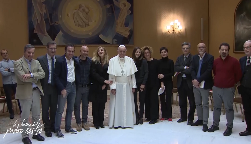 ‘La lezione del Padre Nostro’, documentario di Andrea Salvadore che ripercorre, attraverso le immagini della trasmissione ‘Padre Nostro’ di don Marco Pozza, trasmessa da Tv2000 nei mesi scorsi, l’udienza privata di Papa Francesco con i volti noti intervenuti al programma.