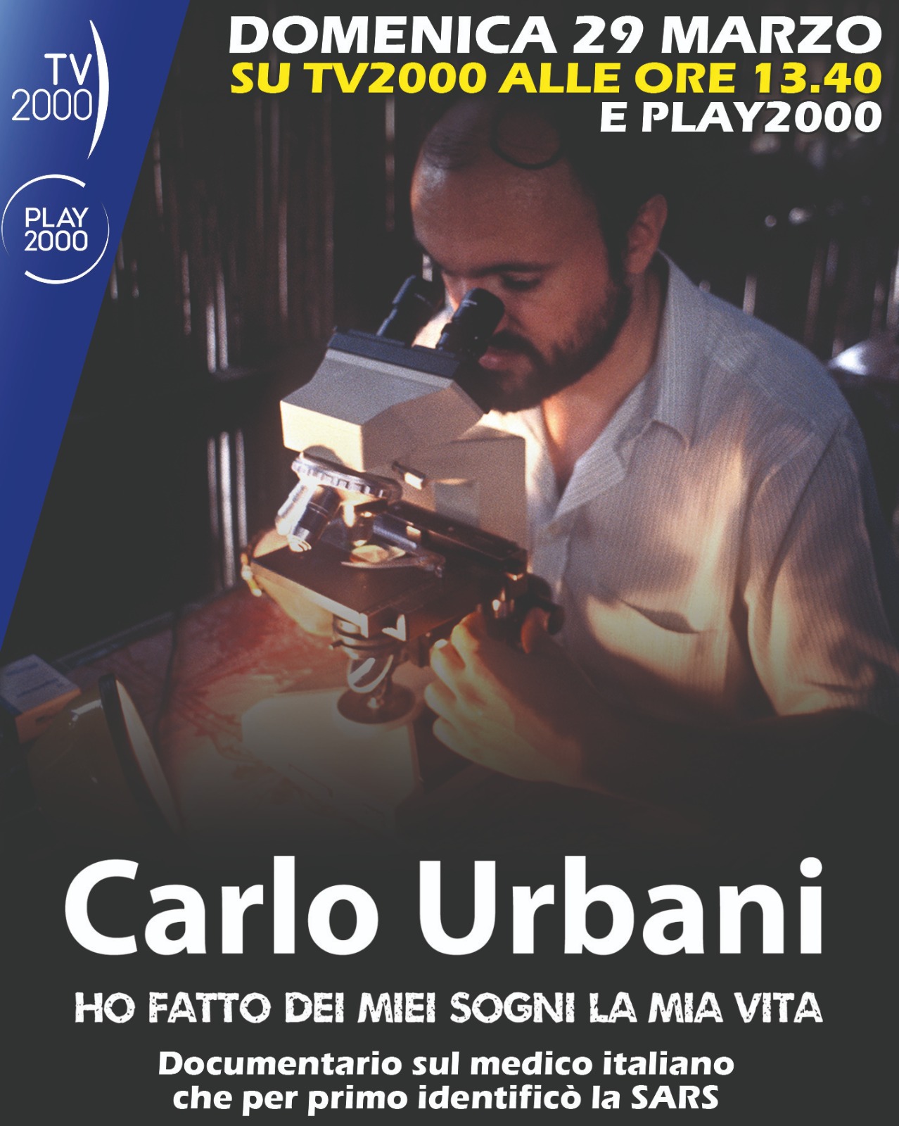 ‘Carlo Urbani. Ho fatto dei miei sogni la mia vita’ è il documentario dedicato al medico italiano che per primo identificò e classificò la SARS, malattia di cui morì il 29 marzo 2003 a Bangkok. Tv2000 lo trasmette, domenica 29 marzo alle ore 13.40, nell’anniversario della scomparsa. On demand su Play2000 e visibile anche all’estero (VOD Worldwide).