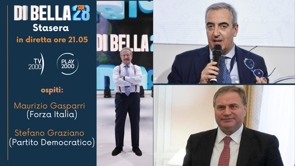Il presidente della Commissione Esteri e Difesa del Senato, Maurizio Gasparri (Forza Italia) e Stefano Graziano (Partito Democratico) della Commissione Difesa della Camera e Vigilanza Rai. Sono gli ospiti del programma ‘Di Bella sul 28’ condotto da Antonio Di Bella in diretta stasera alle 21.05 su Tv2000. Un’analisi approfondita dei conflitti in Medio Oriente e delle loro ripercussioni a livello internazionale e nazionale, con collegamenti in diretta da Washington, dove è atteso un intervento del presidente Trump. In studio anche Monica Mondo di Tv2000 e Livio Gigliuto dell’Istituto Piepoli.