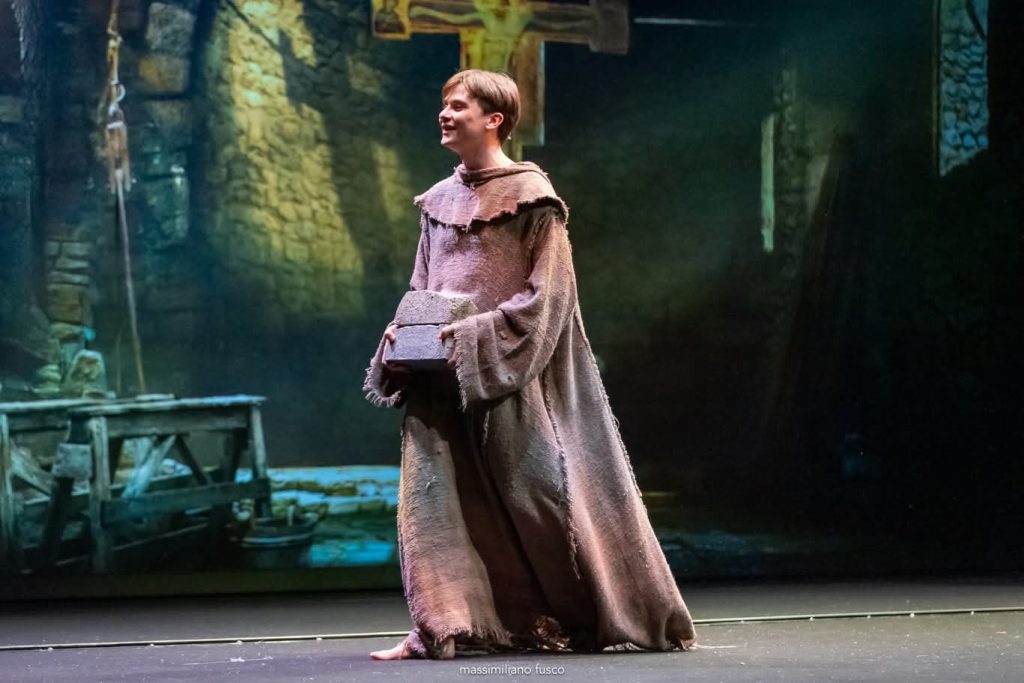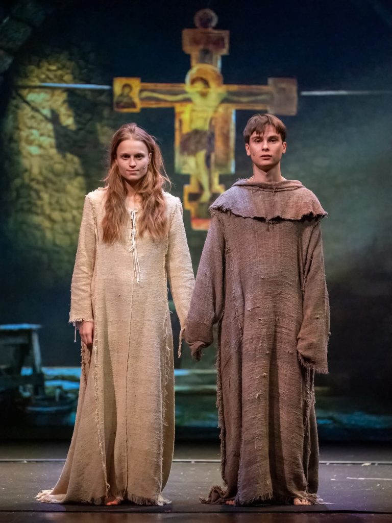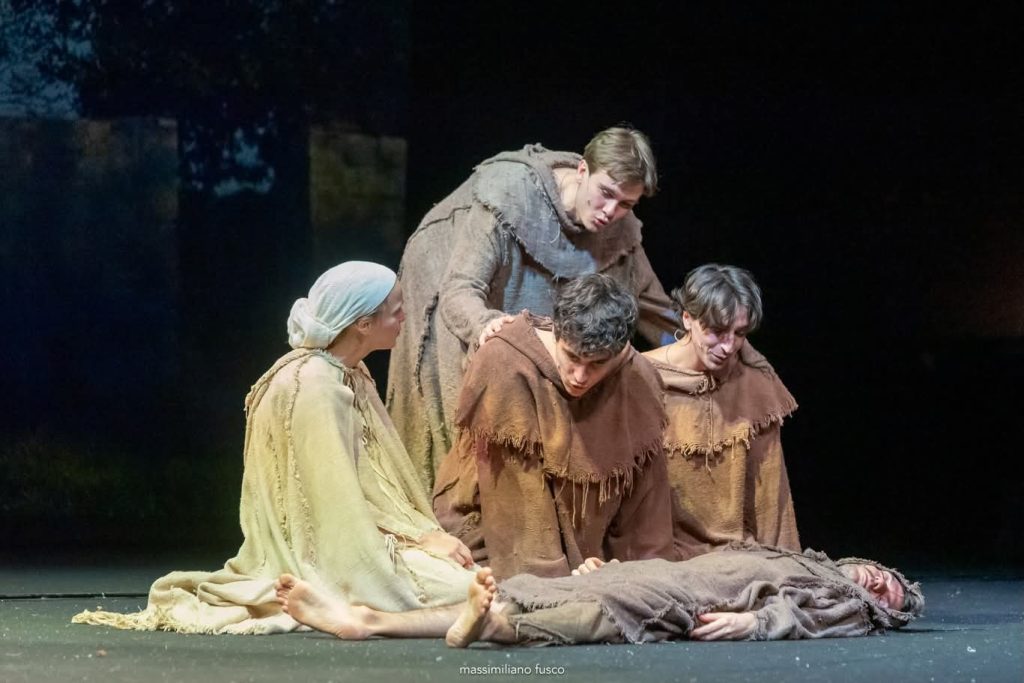 Nella seconda parte, spazio alla rivoluzione spirituale di “Fratello sole, sorella luna”, il progetto diretto da Piero Maccarinelli che porta in teatro la celebre sceneggiatura di Franco Zeffirelli. La figura di Francesco d’Assisi, interpretata da Giulio Pranno, incarna una scelta radicale: la spogliazione non come privazione, ma come atto di suprema libertà e gioia. Accanto a Pranno, la Chiara di Ksenia Borzak lancia un inno contro le ingiustizie, invitando a una fratellanza che sfida le logiche del possesso. Secondo il regista, la visione di Francesco è già intrinsecamente necessaria al nostro tempo: «Beato Signore per nostra sora morte corporale… è una frase meravigliosa. La morte vista come naturale e indispensabile conclusione della vita. Francesco non va attualizzato: va capito, amato e promosso».