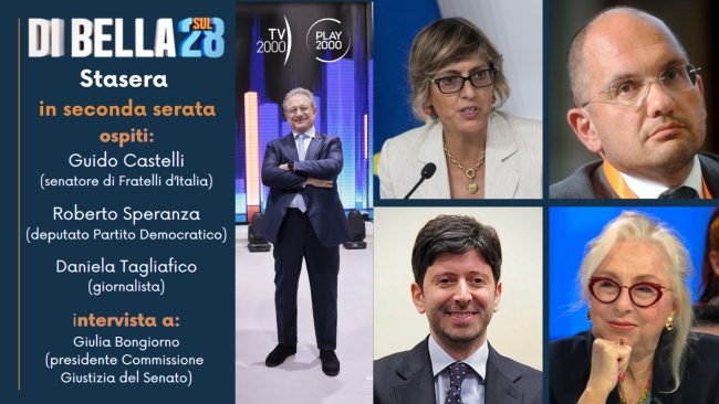 Nuova puntata condotta da Antonio Di Bella. Intervista a Giulia Bongiorno In onda stasera in seconda serata Il senatore di Fratelli d’Italia, Guido Castelli; il deputato del Partito democratico, Roberto Speranza e la giornalista Daniela Tagliafico. Sono gli ospiti della nuova puntata del programma ‘Di Bella sul 28’, condotto da Antonio Di Bella, in onda […]